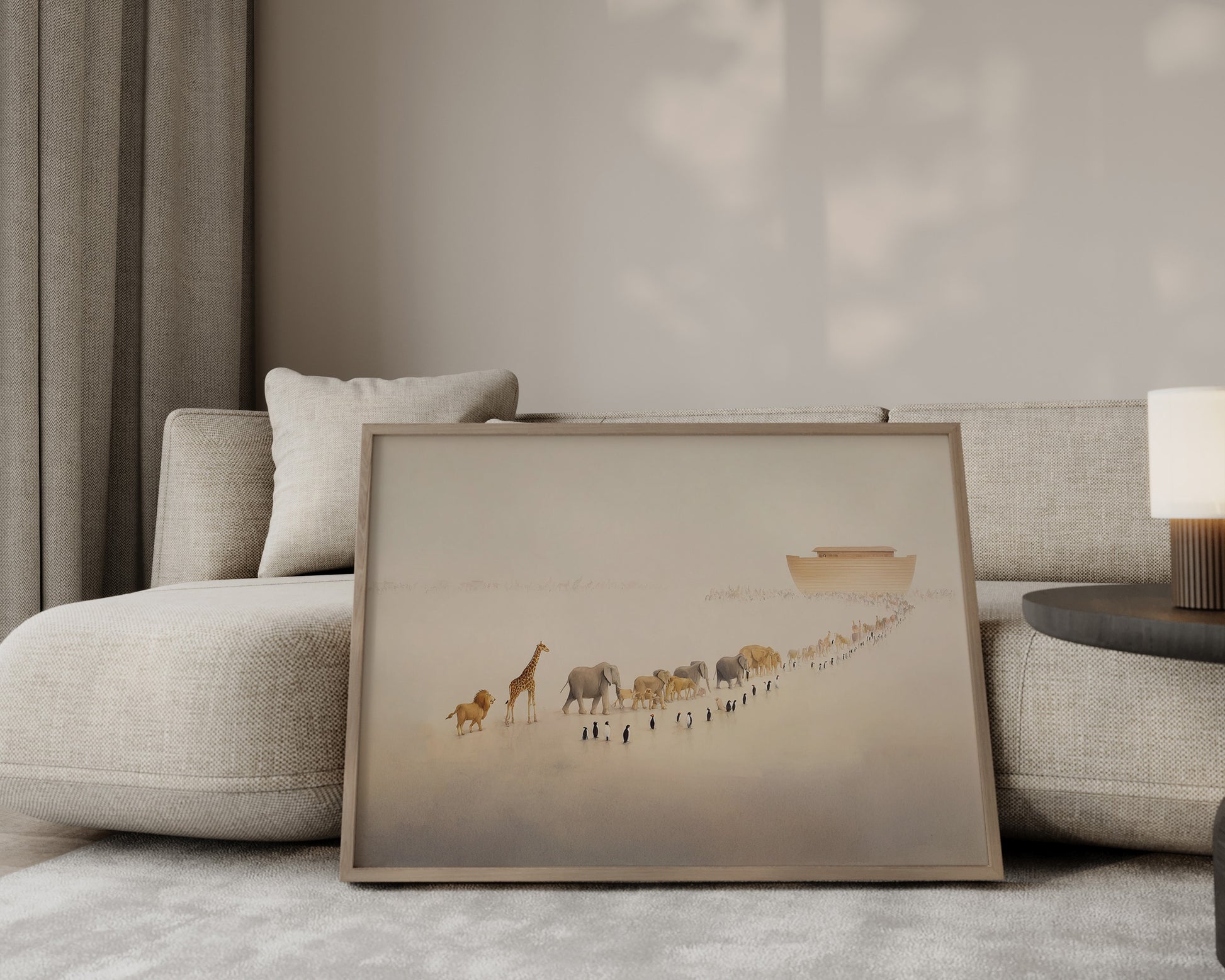 March to Salvation is a moving depiction of God’s creatures journeying in harmony toward the safety of Noah’s Ark. Each step reflects trust, order, and the promise of protection under God’s covenant. This artwork captures both the wonder of creation and the hope of deliverance.