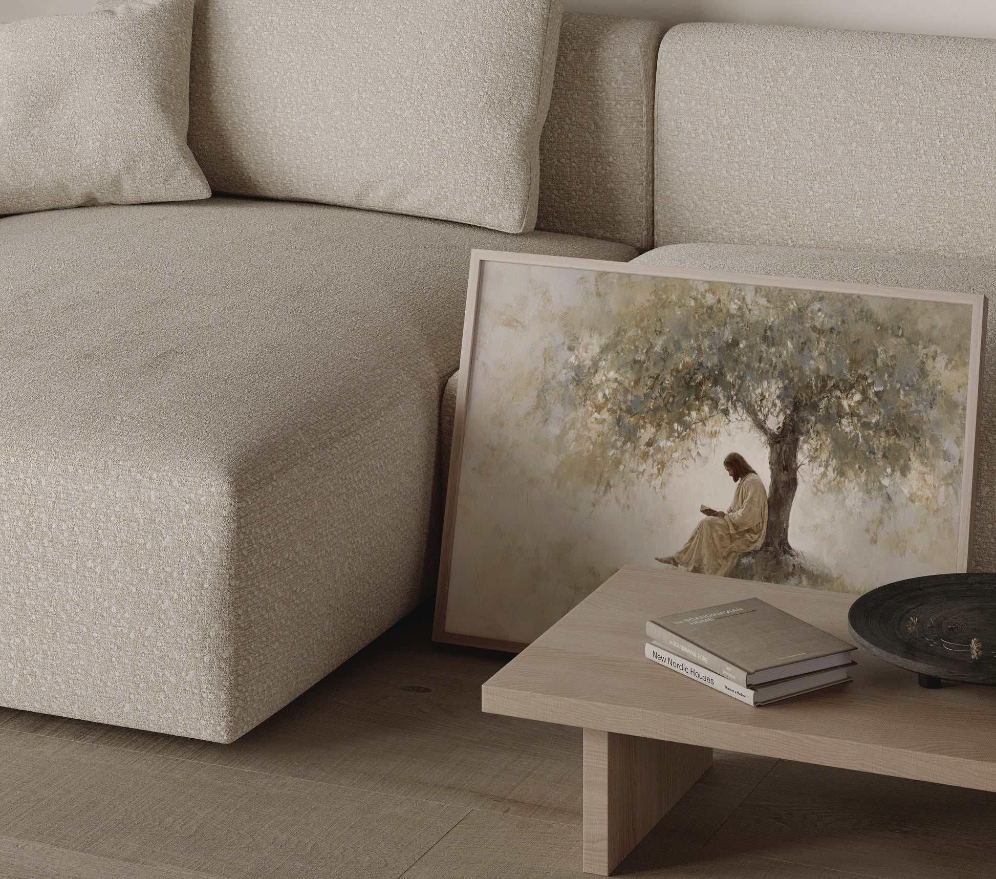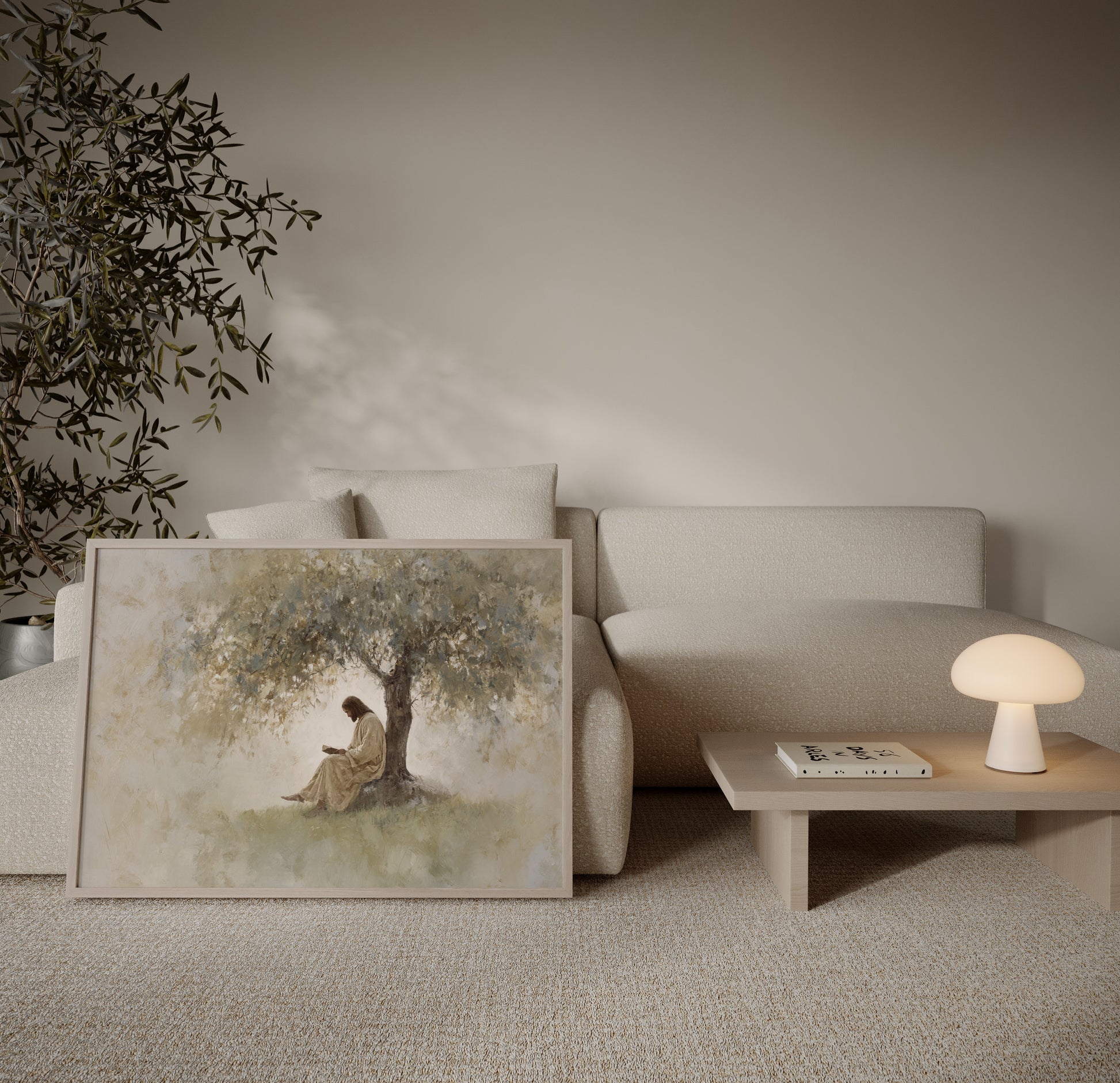 Wisdom of Christ portrays Jesus seated under a tree, absorbed in a book, reflecting the eternal wisdom and guidance He offers to all who learn from Him.